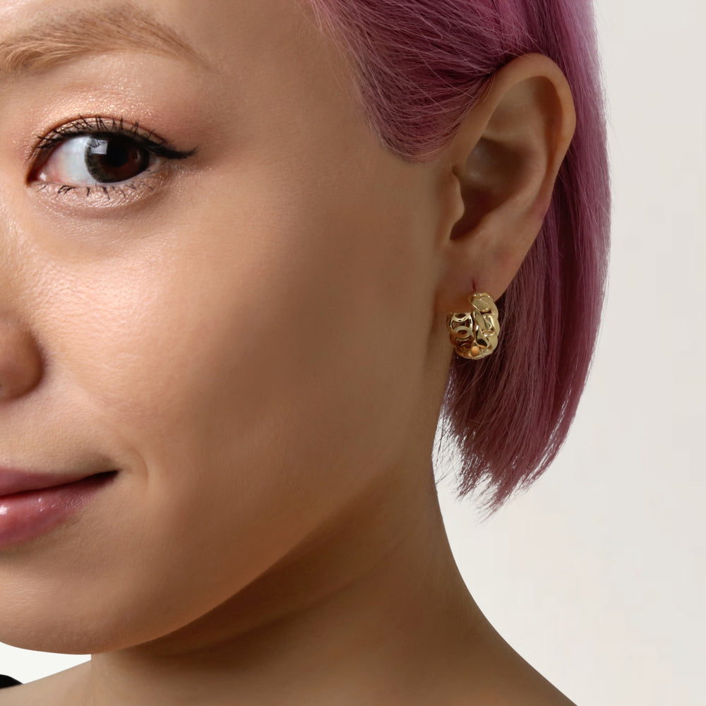 You could also feel the modern glow of our multi-faceted 14K yellow gold Hexagon C hoop earrings with push-back closure; the sun-kissed textured pattern creates an elegant starburst effect, just what you need for the glory and shine of International Women’s Day.