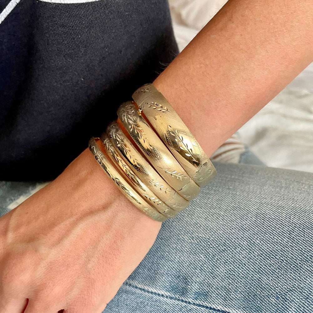Our wide range of bracelets and bangles offers a nice blend of sophistication, boldness, and style. The 14k Gold Bangles with a Floral Pattern will give you just that. Whether worn solo or stacked, they’re a perfect addition to any jewelry collection, promising joy in every detail.