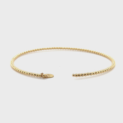 14K Solid Gold 2mm Beaded Cuff Bangle Bracelet – Dainty, Elegant, and Versatile Made In Italy