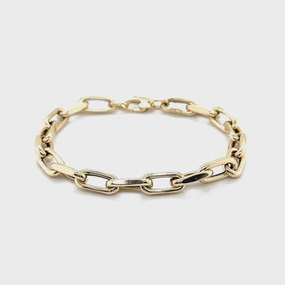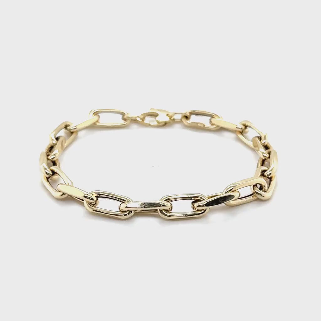14K Yellow Gold Chunky 6mm Faceted Cable Link Chain Bracelet – Elegant, Lightweight, and Secure Lobster Claw Closure