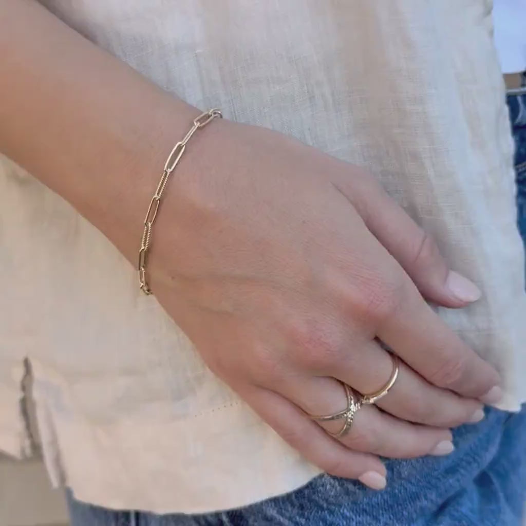 Pair your bracelet with our matching 14K Gold Alternating Twist Link Paperclip Necklace for a cohesive and elevated jewelry set.