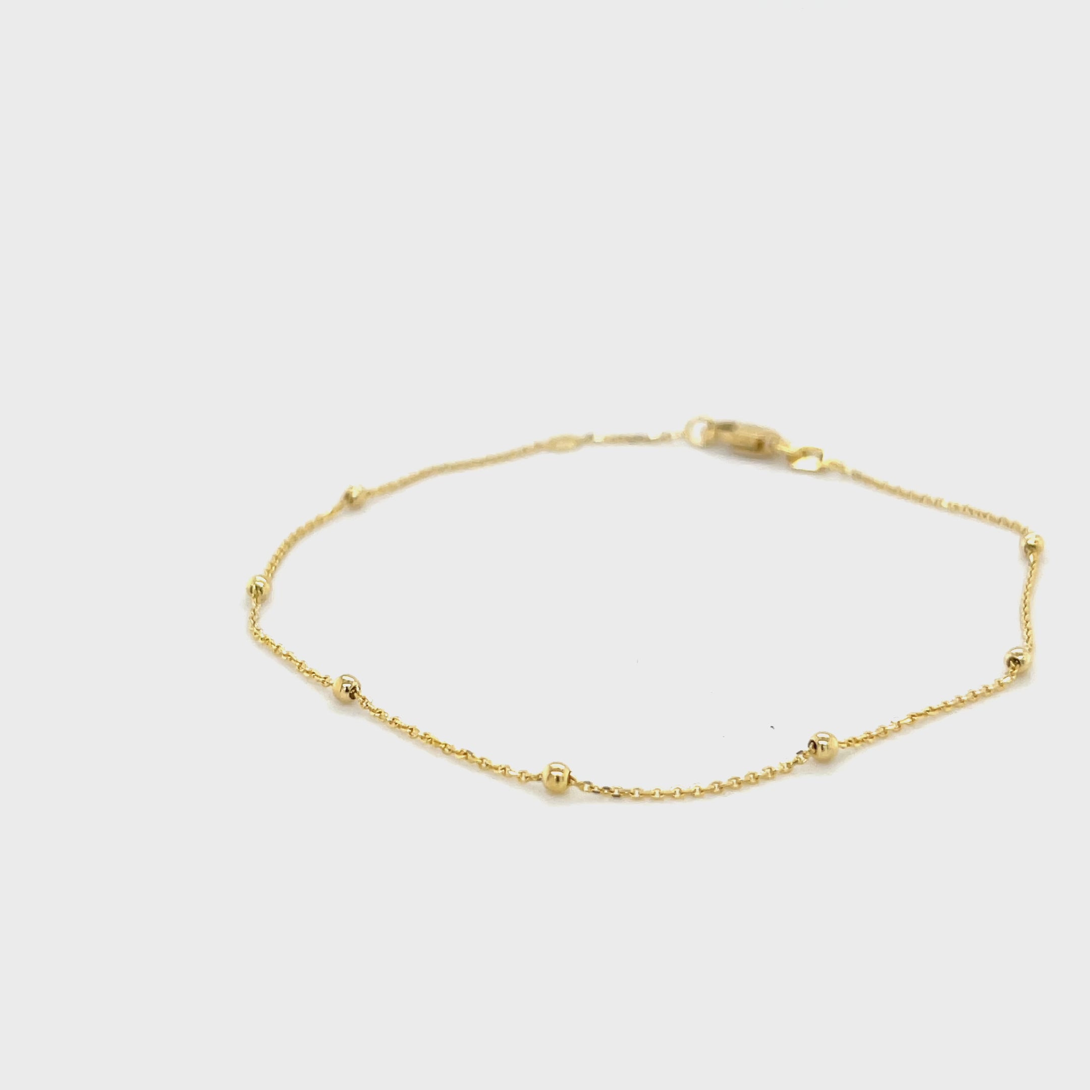 14K Solid Gold Beaded Chain Bracelet – Elegant, Delicate, Adjustable