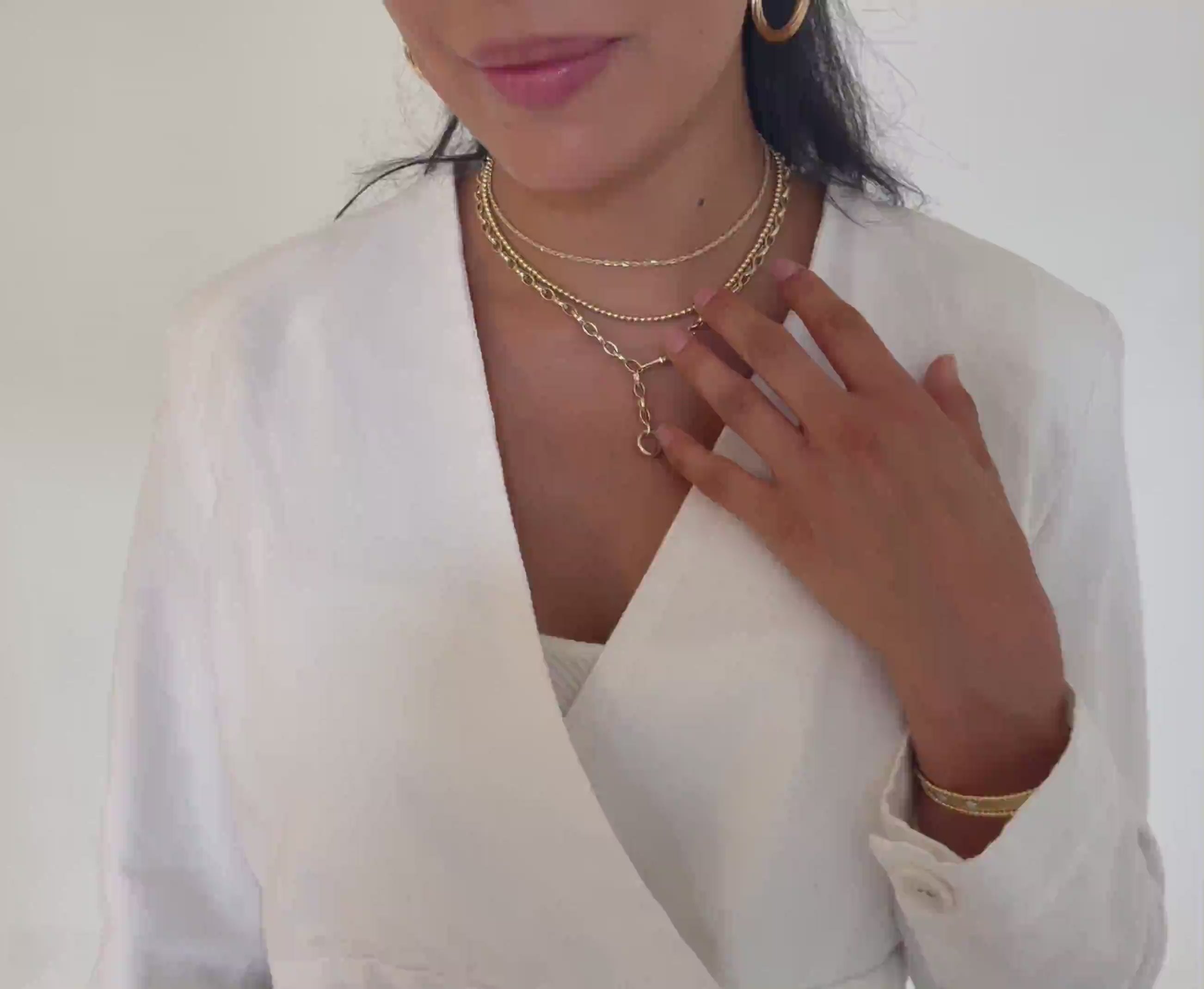 14K Gold Double Clasp Charm Holder Necklace: Versatile, Dog Clip & Circle Clasp - Made In Italy