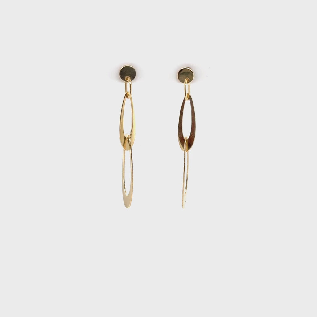 14K Gold Elongated Oval Links Drop Earrings