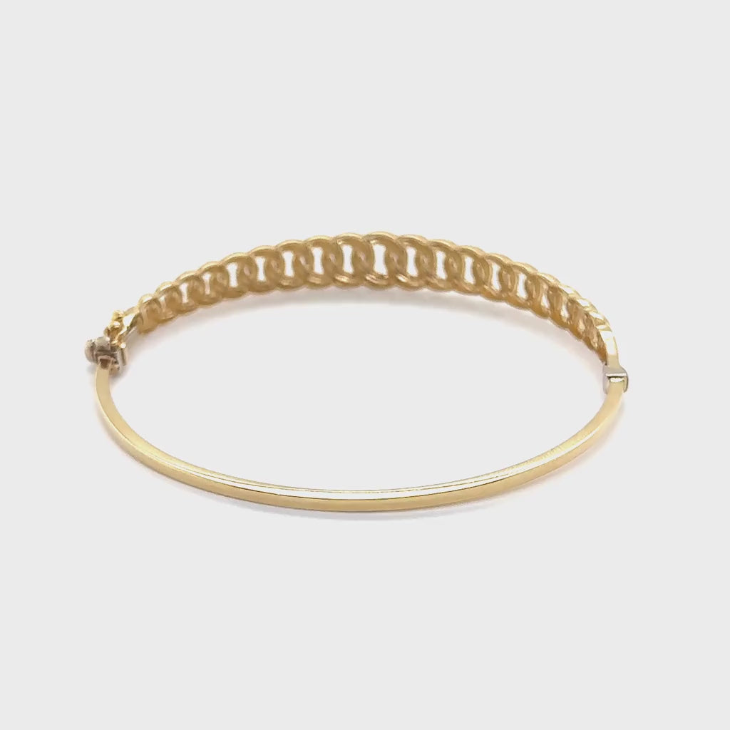 Crafted in 14K yellow gold, this hinged bangle features a bold curb link design that graduates from 2mm to 8.4mm for standout dimension. The 7" fit secures with a box clasp and shines whether worn solo or stacked. A chunky essential with a polished finish.