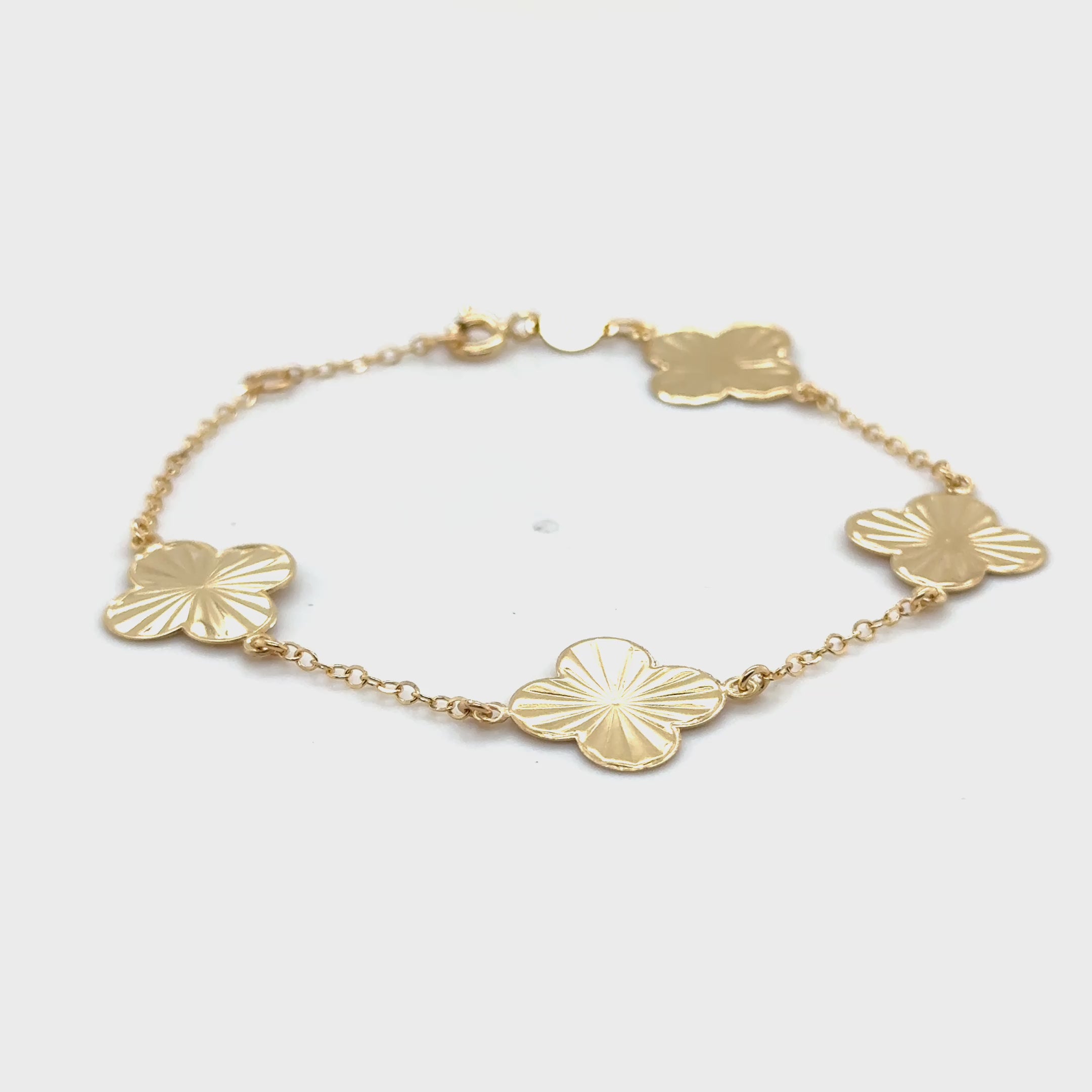 14K Solid Gold Station Bracelet Clover Motif Polished Chain – Elegant, Timeless, Italian