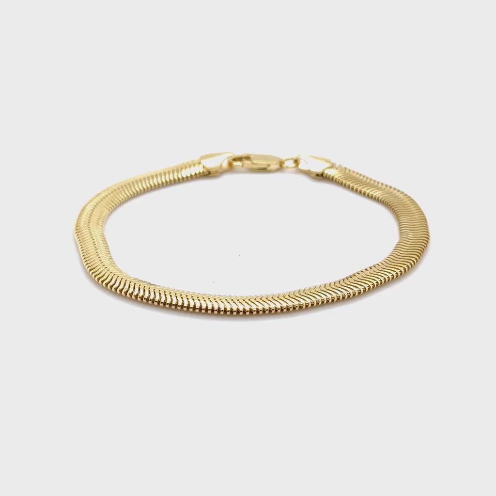 14K Yellow Gold Oval Snake Chain Bracelet – Elegant, Durable, and Distinctive Design with Secure Lobster Claw Closure