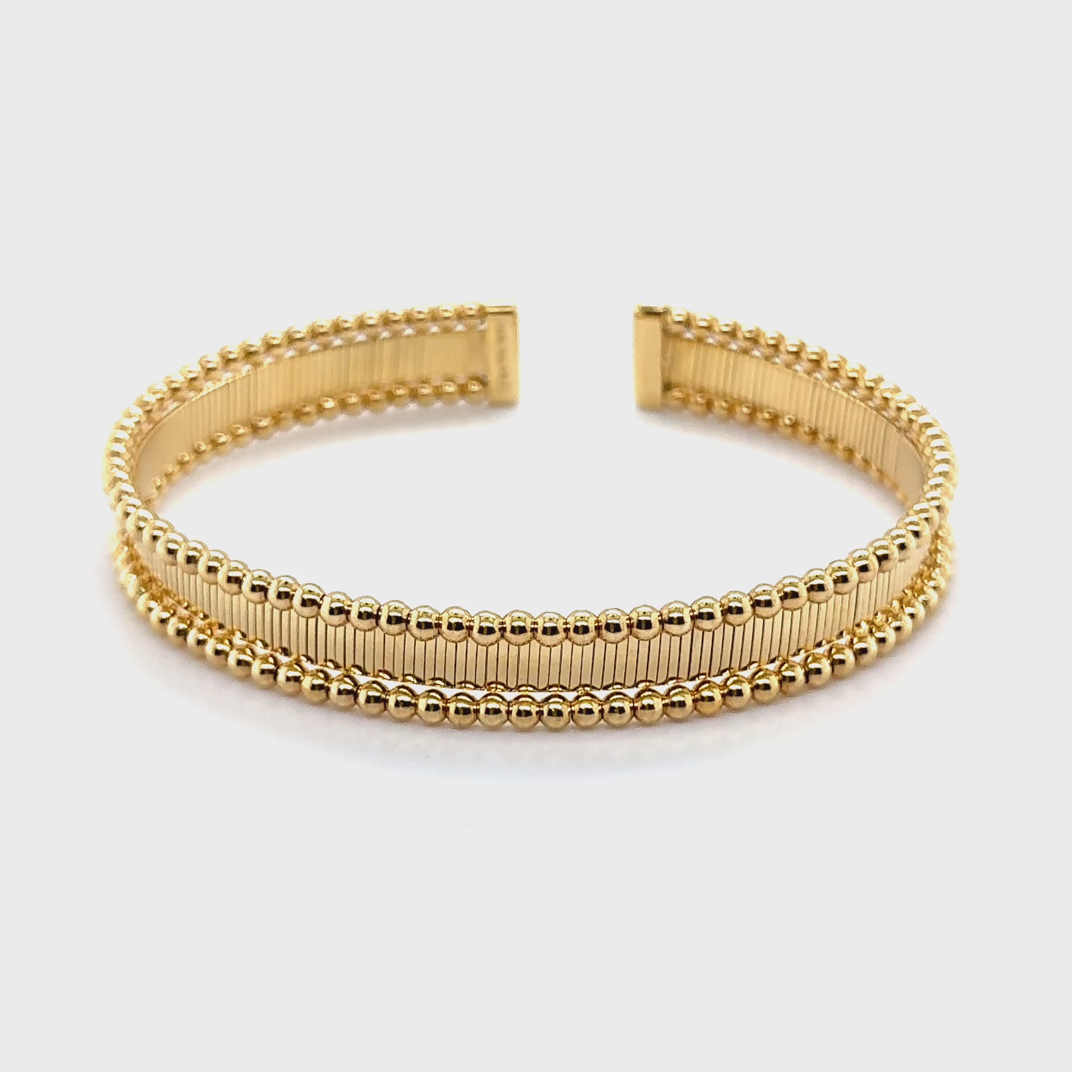 14K Gold Cuff Bangle with Beaded Edge: Bold & Elegant