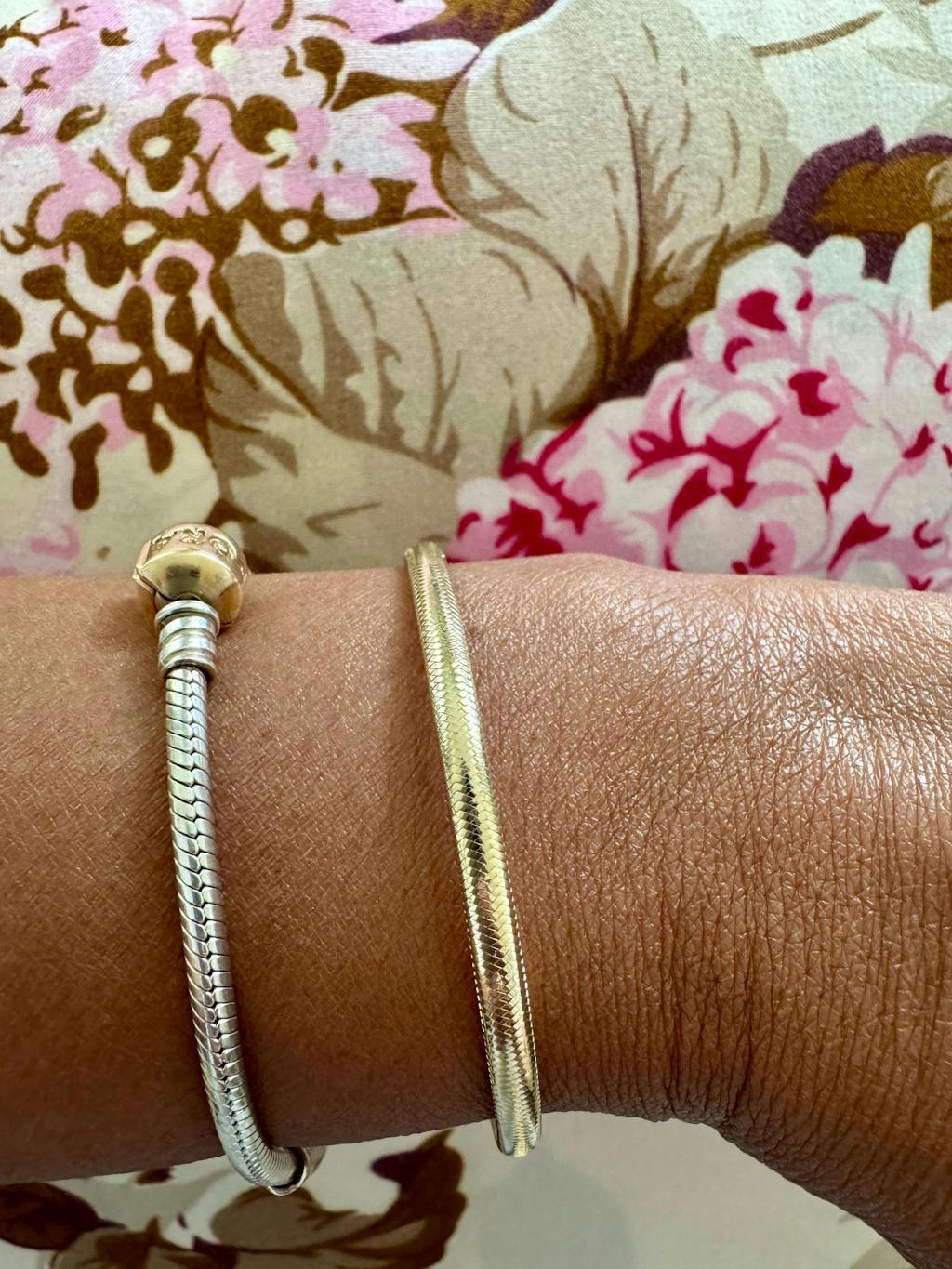 This lightweight Italian 14K yellow gold bangle features a slim 3.4mm mesh design with a comfortable stretch fit and no clasp. Crafted from real gold—never plated—it contours naturally to the wrist and is resistant to tarnish and water, making it ideal for everyday wear.