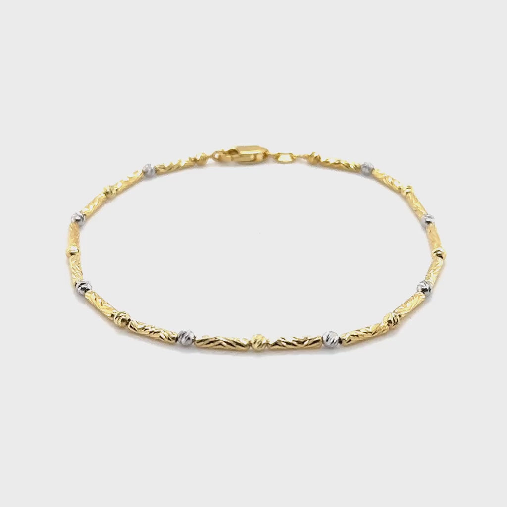 14K Two-Tone Gold Bar and Bead Bracelet – Elegant, Textured and Everyday Ready