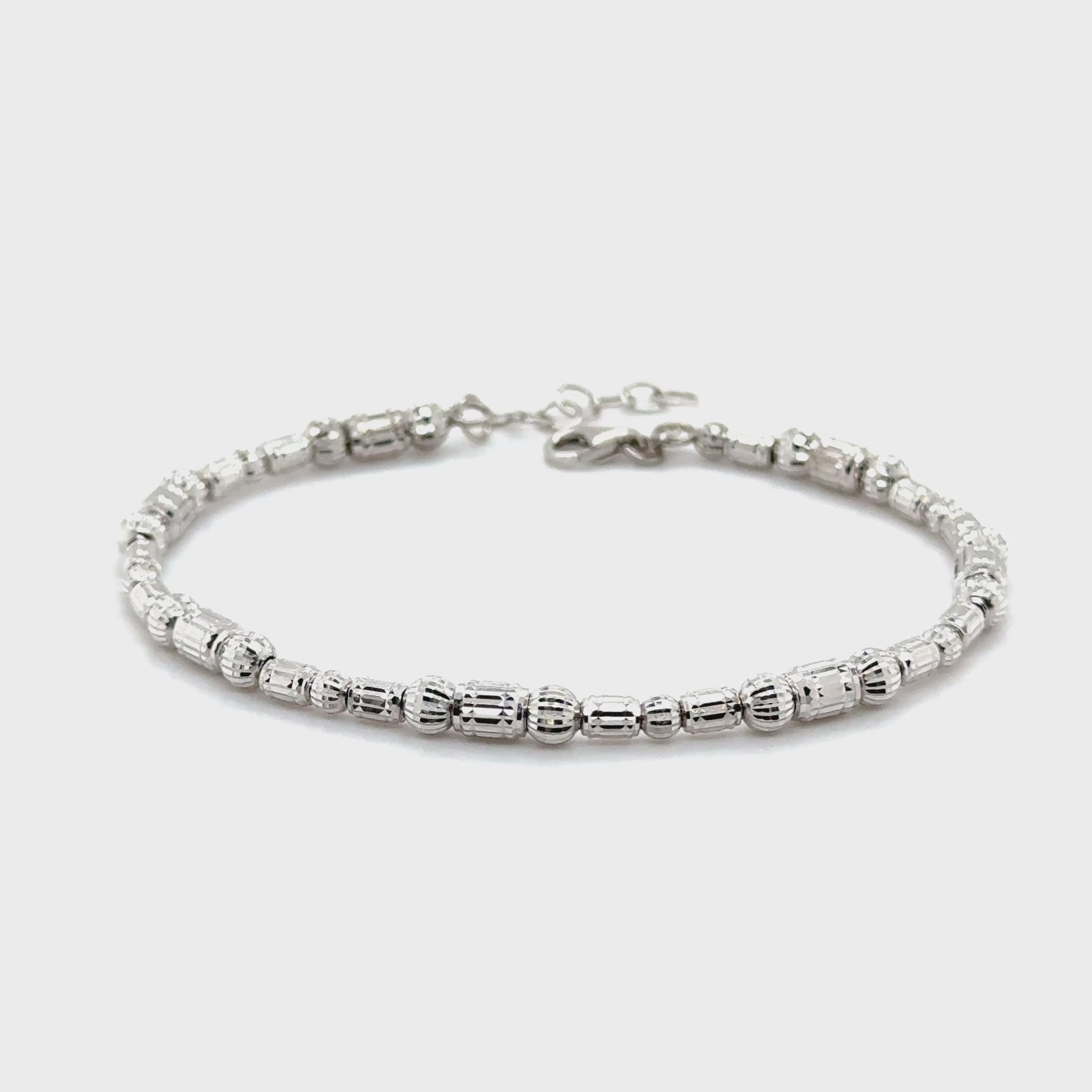 14K White Gold Barrel Bead Bracelet – Elegant and Adjustable Lobster Claw Closure