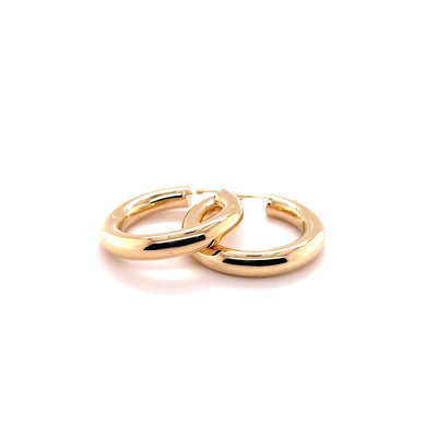 14K Yellow Gold Classic Polished Hoop Earrings — 5mm Thick, Sizes 30mm / 40mm