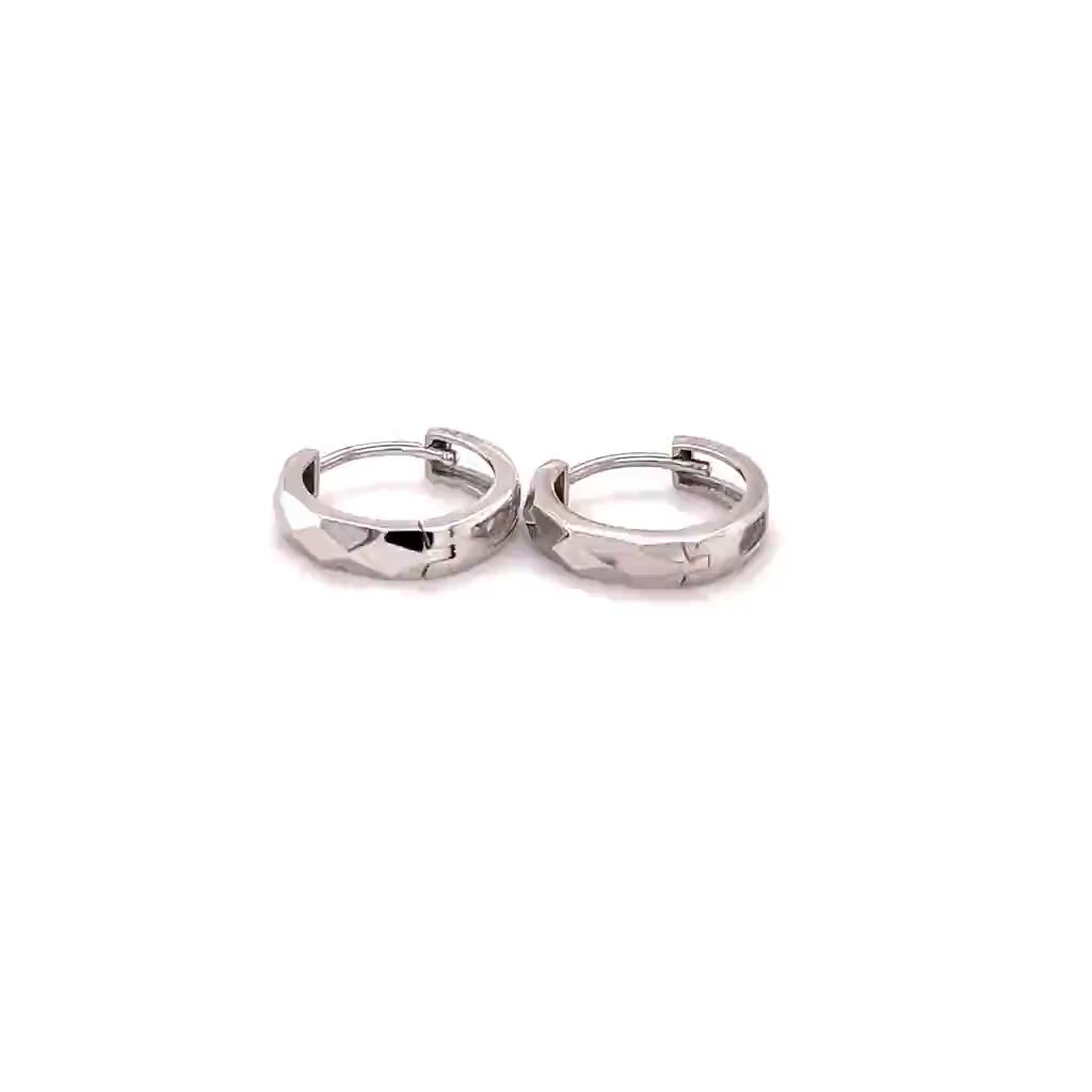 14K White Gold Faceted Huggie Hoops